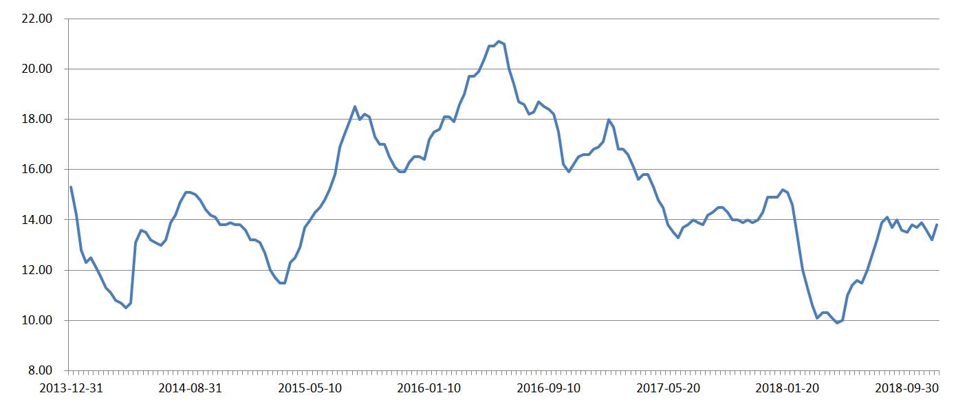 从历史情况来看,近5年间,全国生猪均价变化体现出明显的周期性特征,峰谷交替明显。在今年1月10日至5月10日期间,猪价遭遇了一轮较大幅度的下挫,区间跌幅接近35%,这也是自2016年年中高位以来猪价经历的第三轮较大幅度的回调,随后全国生猪价格开始触底反弹。虽然近期猪价在此前一轮较为强势的反弹之后,短期处于震荡阶段,不过从绝对数值上看仍处于历史相对低位。