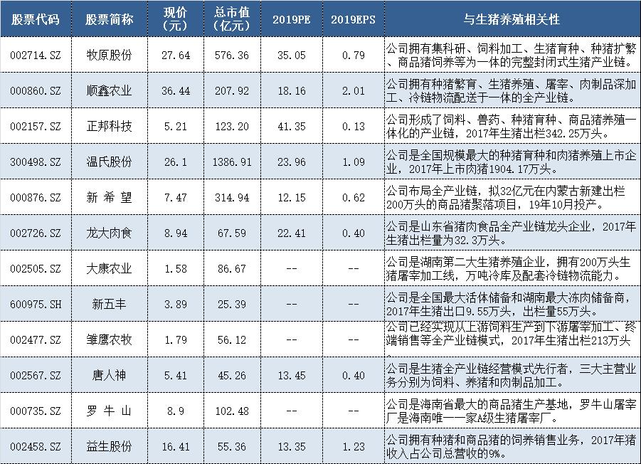 界面新闻整理了部分猪产业链概念股: