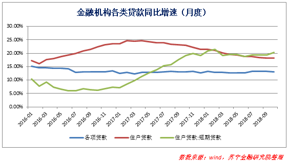 从数据上看,2016年以来,金融机构个人贷款(下图中的住户贷款)增速显著高于全部贷款增速。进入2018年,一年期以内的短期贷款增速后来居上,超越中长期贷款(房贷、车贷为主)成为银行个贷增长的火车头。