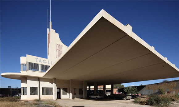 菲亚特·泰格里奥加油站依然挺立着,最近还经历了一次翻新。它已经抛弃了以往与殖民地的联系,正在阿斯马拉的遗产项目中扮演着一个具有进步性的象征角色。该项目正在为加油站申报联合国教科文组织的世界遗产,然而法西斯时代的建筑并不能体现“优秀的普世价值”。但是厄立特里亚与现代性的残酷遭遇带来了如此难以言说的痛苦,也给这个非洲小国带来都市生活的独特方式。也许很难再从非洲甚至全世界找到这样一座首都,被它的居民和游客如此敬仰。在这个国家,飞机曾经是殖民镇压的同义词,而菲亚特·泰格里奥加油站象征着厄立特里亚人保护自己丰富的文化遗产的决心。在过去的几个世纪里,因为地理位置的战略性,厄立特里亚一直连接着非洲、欧洲和中东。