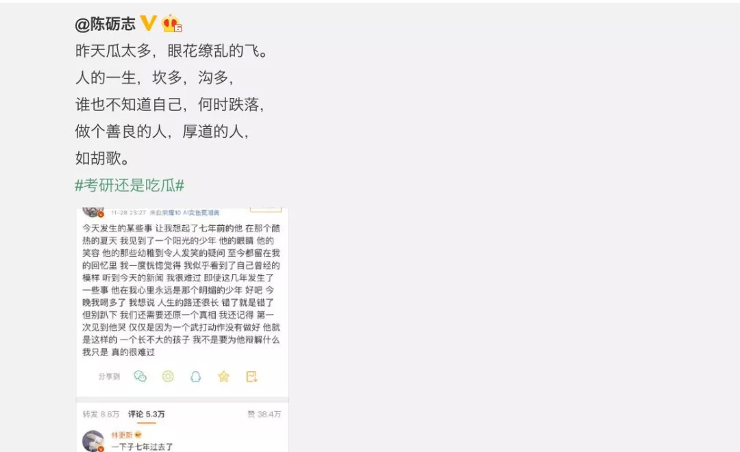 所以杨伟东的倒下并非偶然,而是互联网企业针对内容板块整顿的必然。就在11月29日,杨伟东曾经创业的合伙人还曾在微博发出感叹:“人的一生,坎多,沟多,谁也不知道自己,何时跌落”,颇有一语成谶的味道。