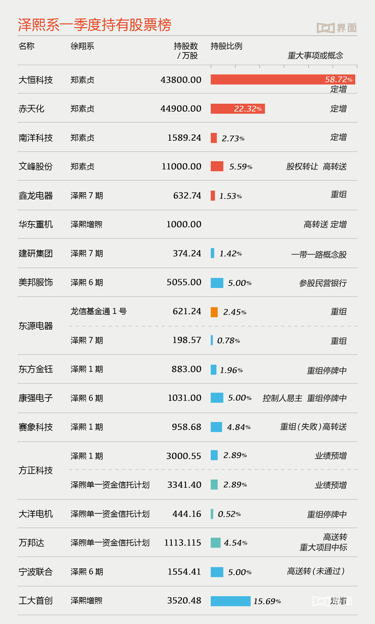 综合以上几种方式,界面新闻不完全统计,泽熙系第一季度曾持有的公司如下: