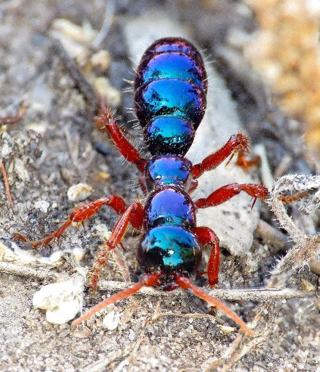 相反,它是一种寄生在蝼蛄上的花蜂。 雌性蓝蚁用它们的叮咬麻痹蝼蛄,然后在它们身上产卵,确保新生幼虫有新鲜的一餐。而成年蓝蚁主要以花蜜为食。