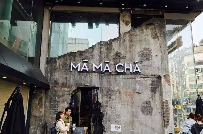 同样属于长沙网红品牌的MAMACHA也在门头设计上有自己的一套。