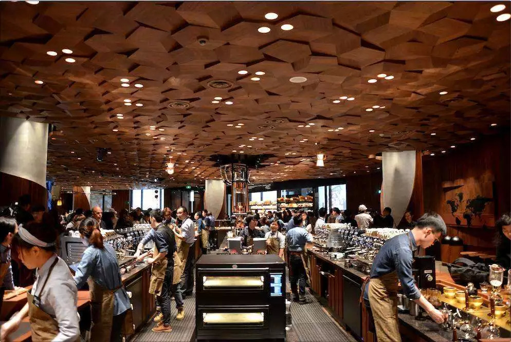 一进门熟悉的“星巴克咖啡香”让人顿时放松下来; 巨大的烘焙机器和屋顶上错综复杂的咖啡豆运送管道,看的目不暇接;特调茶饮含有酒精的刺激感,让味觉惊艳;杯子、设备、周边产品随处可见,拿在手里把玩一番。