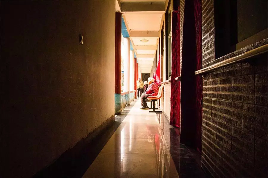▲ 一处养老院的走廊和走廊上的老人们。 图虫