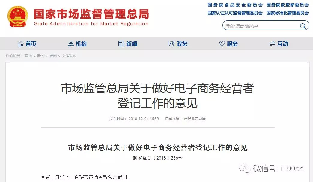 导读:《电子商务法》实施在即,12月3日,市场监督总局对外公布了《关于做好电子商务经营者登记工作的意见》。其中,电子商务经营者申请登记为个体工商户的,允许其将网络经营场所作为经营场所进行登记。对此,电子商务研究中心(微信ID:i100ec)第一时间发布【电商快评】给予解读。