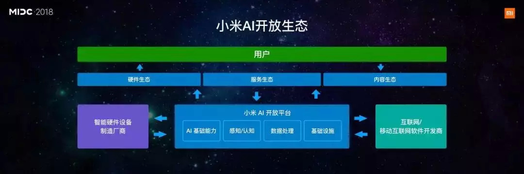 AI将贯穿三个维度,实现小米在互联网服务领域的突破,帮助其成为名副其实的“互联网公司”。第一维度是由手机、电视、盒子、路由器、智能音箱等小米的核心硬件建立起的产品边界,中间维度是操作系统打造出的IoT生态链体系,第三维度是与宜家、微软等第三方平台的合作。