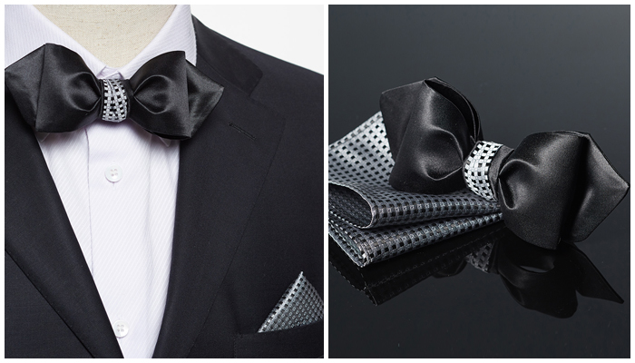 (编辑说:如果你也喜欢上图的Monsieur黑色领结口袋巾套装,可以点击名称购买)