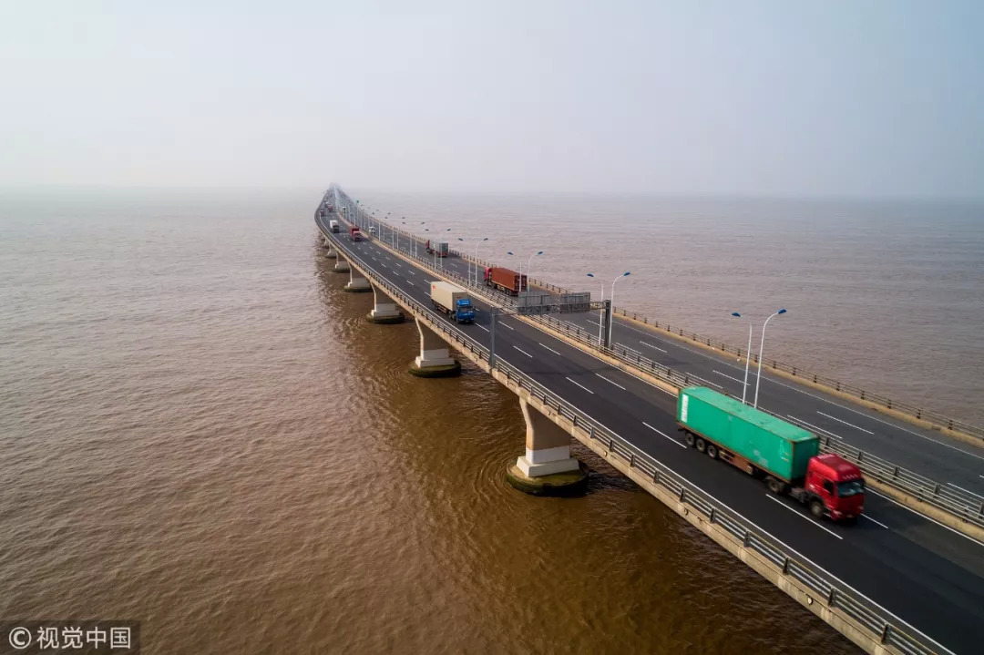 洋山港 :【32.5公里长的东海大桥是中国修建的第一座跨海大桥,总投资超过70亿,在风高浪急的外海,运用高效、科学的施工技术,实现大桥贯通仅用3年。】