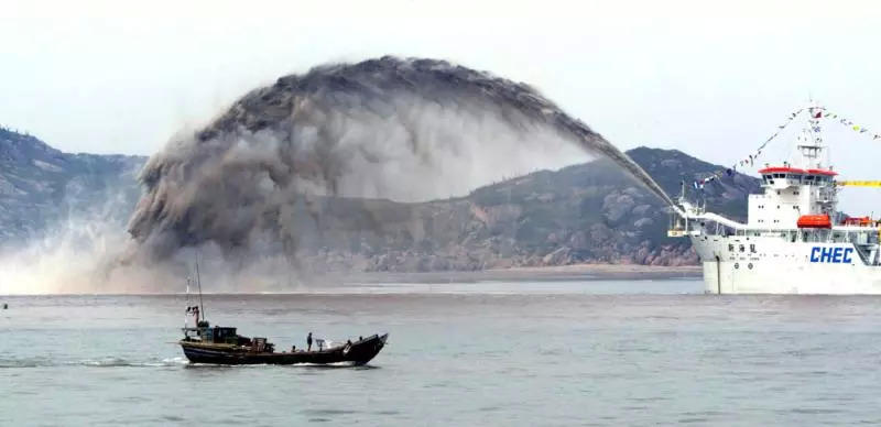 2003年,洋山港区的吹泥船在吹沙填海