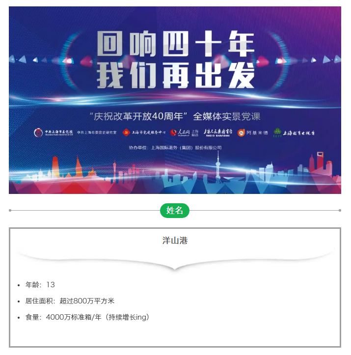 秦 畅 :【洋山港一期开港之后,从2010年开始连续8年保持世界第一纪录,去年更是创下了4000万以上的标准集装箱吞吐量。更令人振奋的是,去年年底,洋山深水港的四期码头建成了,这是全球最大的单体全自动化智能码头,全年可作业天数超过315天,刷新了世界新纪录。】