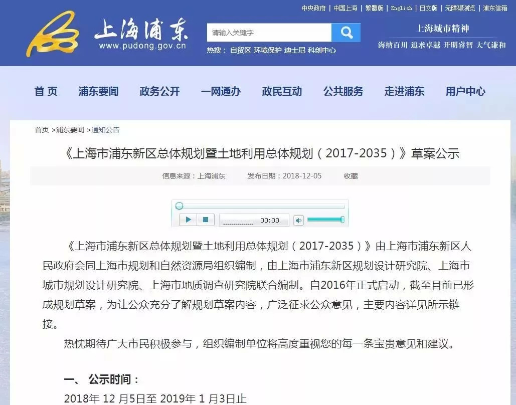 图片来源:上海浦东官网截图