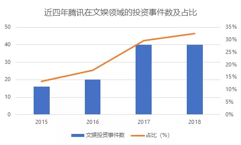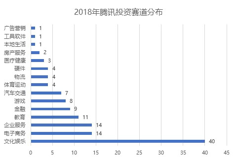 文化娱乐是具有社交基因的腾讯最爱「买买买」的赛道,其在 2018 年已经出手了 40 次,投资的细分领域包括媒体及阅读、视频、动漫、影视等。据不完全统计,从 2015 年起,文化娱乐就开始成为腾讯出手频次最多的赛道,最近两年出手频次更是超过 40 次,无愧于腾讯泛文娱帝国的称号。