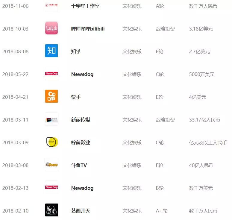 图:腾讯 2018 年连续投资的文娱公司 List(*图片来自 IT 桔子网站腾讯页面)