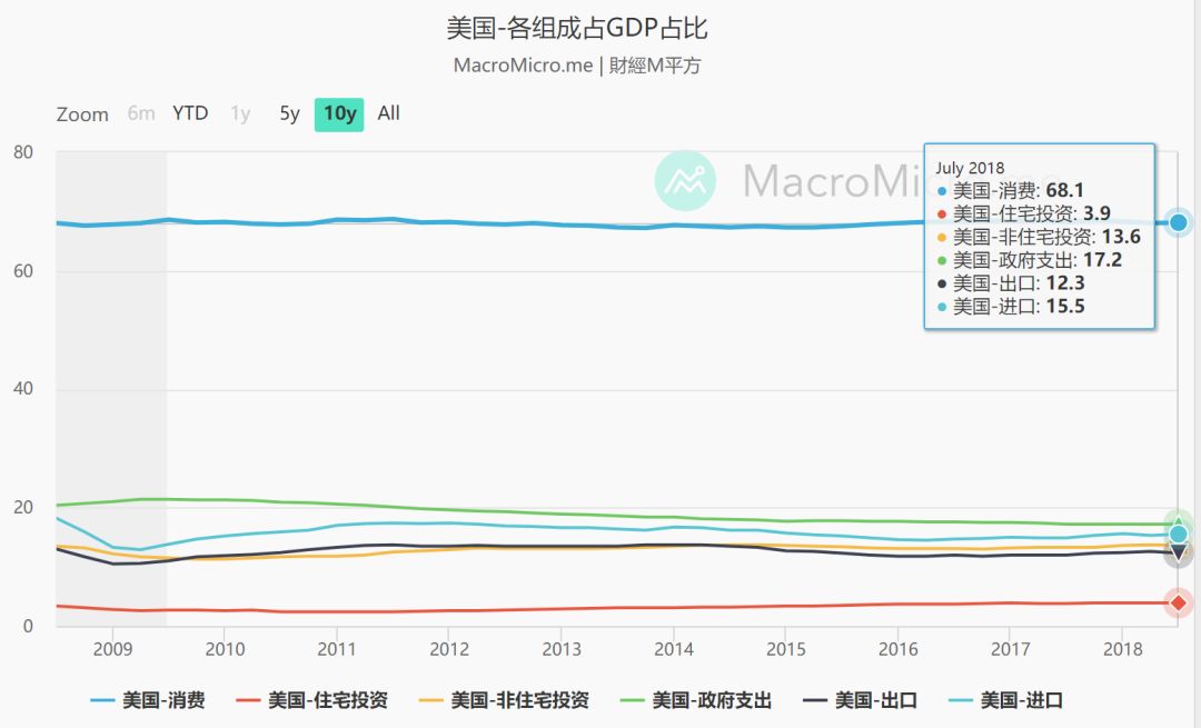 美国近十年的GDP各项组成数据图 来源:财经M平方