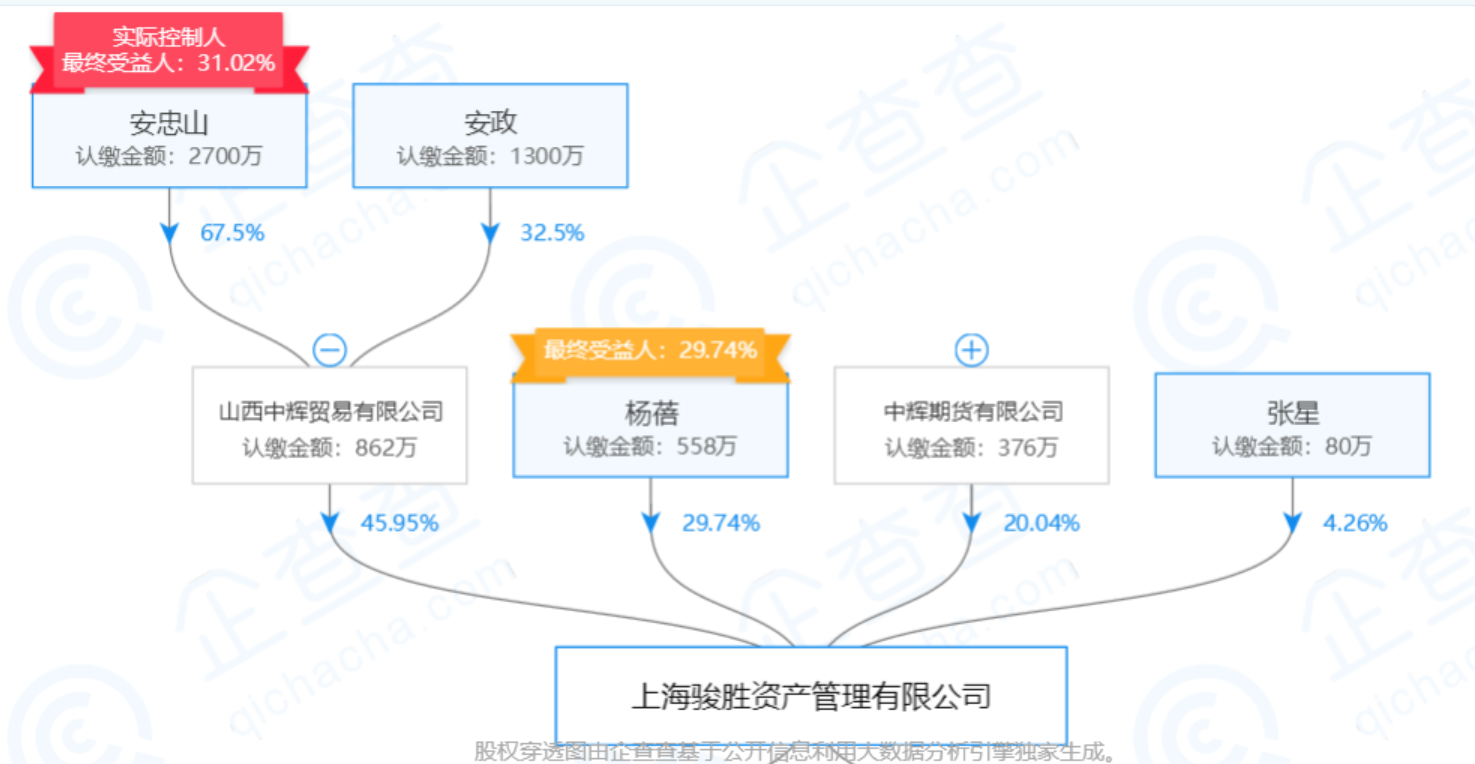 再查上海骏胜和国亚金控。据企查查显示,上海骏胜注册资金1876万元,实缴资金800万元,成立于2011年4月12日,所属行业租赁和商务服务业,该公司还持有横店影视(603103)的股权。