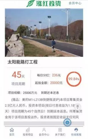太阳能路灯工程,项目规模1.5亿,每日分红236元。
