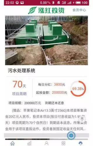 污水系统项目集资,项目集资70天,每日分红3800元。