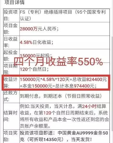 项目介绍中详细演算了收益计算,这意味着四个月的收益率达550%。