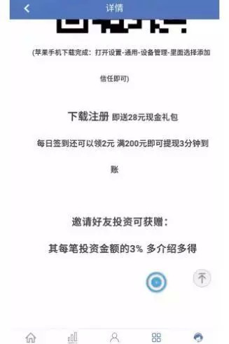 “最近不少不知名的理财APP横空出世,号称年化率高达365%~1825%,堪称贩毒式理财。他们的获客方式和高收益手段如出一辙。注册就送现金28元,每日签到能获得2元,3分钟就能提现,邀请好友还能获得收益分红。
