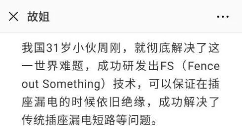 在2017年9月一则来自《成都商报》的报道中讲述,公司创始人85后的周刚自主研发了FS绝缘连电技术,解决了传统裸露连电技术“漏电、短路、电弧”三大安全难题,发明了既绝缘、又通电的不怕水插座。