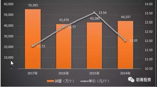 从量价来看,公司的收入增长依靠的是销量增加,公司产品提价的能力并不强。而且2017年单价只有11.72元/个,是四年的新低,进一步佐证公司清库存的可能性。
