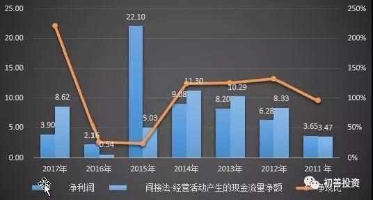 看经营活动现金流量净额与净利润的比值,即净现比,意味着一元的净利润带来的现金流,我们发现大部分年份净现比大于1,即现金流非常不错。2015年是因为有投资收益18亿元左右,导致净现比畸形。