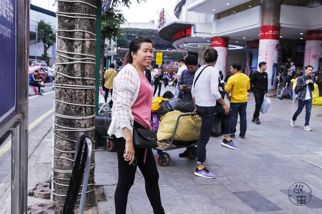 比起主动去找客人,陈阿姨大部分时间都是默默地站在一旁,像在等待谁,又好像在发呆。比起自己在白马搬货的收入,十三行同乡那边的搬货生意好很多,大部分人从早忙到晚一天能有300元。陈阿姨说自己去十三行做了几次,太辛苦了就回来了了。但白马批发市场生意的惨淡,又常常让她难以维持生计。