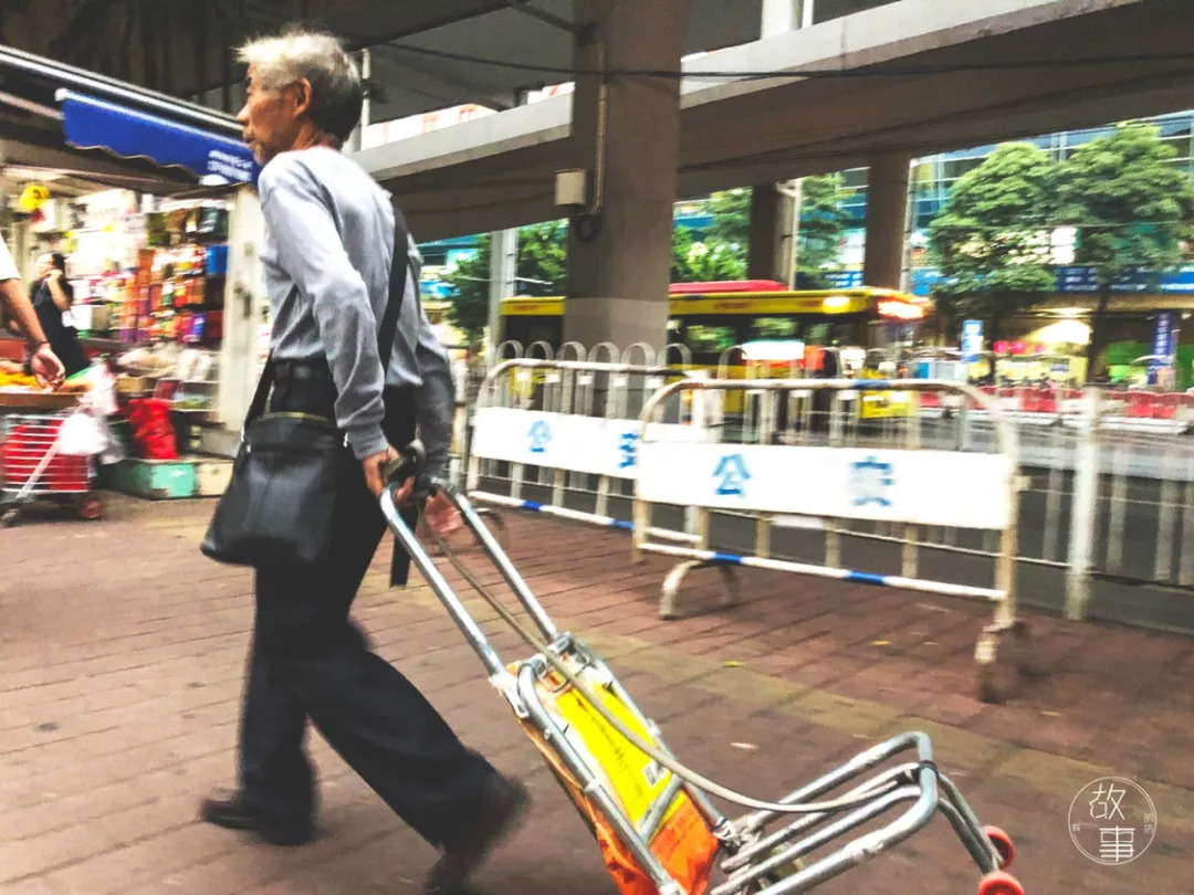 这几天生意一直很低迷,托熟客的关系,陈阿姨今天完成了两单,收入50元。跟她一起闲在路边的搬货工还有很多,大多拖着空车来来回回的走,遇见有人拿着打包的大黑色胶袋,就会快速的上前询问,但大部分都会无功而返。