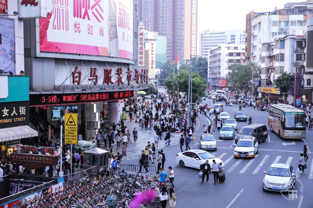 而1993年白马商贸大厦的开业,标志着流花商圈的兴起。此后,大大小小几十个服装批发市场,背靠广州火车站,依托于商圈不断发展壮大,渐渐形成流花批发市场核心区域。