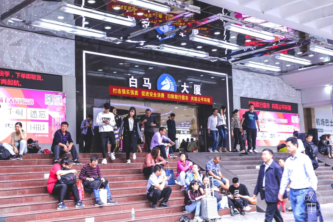据在白马五楼开了几十年档口生意的华姨回忆,20世纪初是白马生意最好的时候。一楼的档口市值过千万,而且还是一铺难求,有钱都未必能进。每天还没开门已经有很多采购商等在门口,拿着黑胶袋手推车,等着一家一家的扫货了。商户只需要坐在铺里收钱,款式好看的衣服,基本上一天就被扫荡完了,店里根本留不住货。