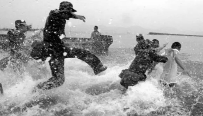 这天晚上后海湾海水大落潮,海边的泥沙都裸露出来,边境守军的探照灯在泥潭表面一次次掠过。为了不惊动值班守军,他在布满蚝壳的泥潭里,匍匐爬行了一个小时。到达深水区时,他的腿上、手上全是蚝壳划出来的伤口。