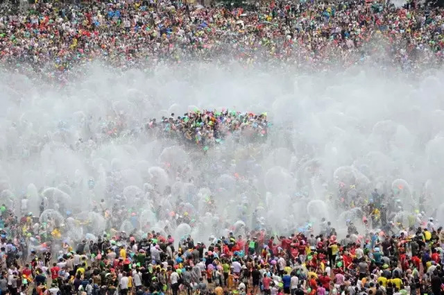 泼水节是傣族送旧迎新的传统节日,也是云南少数民族中影响面最大,参加人数最多的节日,已有上千年历史。“水花放,傣家狂”,人们用铜钵、脸盆,甚至水桶盛水,在大街小巷,嬉戏追逐,迎面的水,背后的水,尽情地泼来,一个个全身湿透,人们兴高采烈,到处充满欢声笑语。