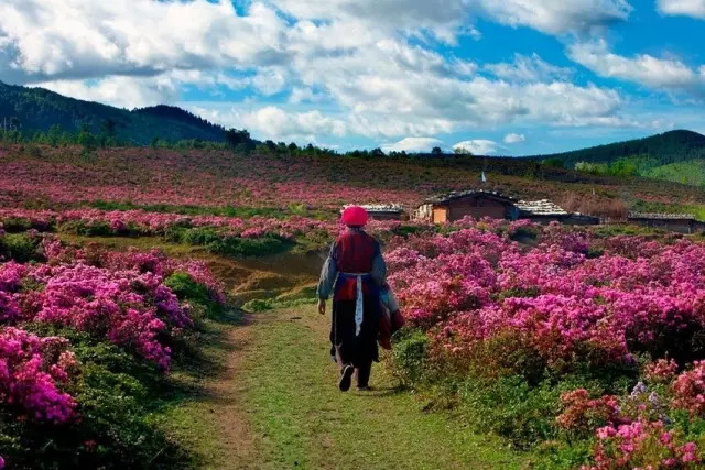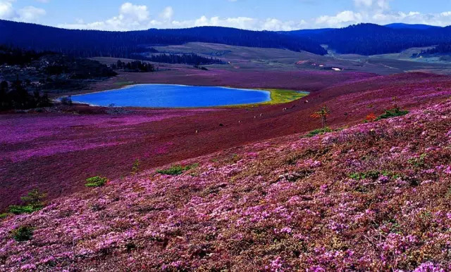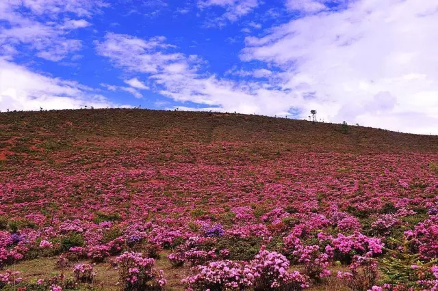 每年的6月是香格里拉千湖山杜鹃盛开的时节,姗姗来迟的春姑娘唤醒了生长在这的大量高山杜鹃林,黄杜鹃、红杜鹃、白杜鹃、紫杜鹃花海把千湖山变成花的世界,花的海洋。