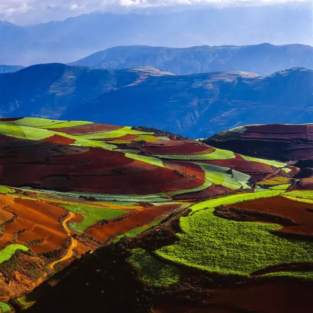 云南,有一片绚烂的七彩土地,赤、橙、红、绿、青、蓝、紫,犹如彩虹一般。似乎是被远古天地塌陷后的天火燃烧过,才有了如今艳丽到极致的色彩,这片土地就是东川红土地。