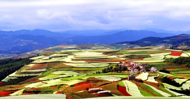 每年10月,是东川最美的季节,一部分红土地翻根待种,另一部分红土地已经种上绿绿的青稞或小麦和其他农作物,远远看去,就像上天涂抹的色块,色彩绚丽斑斓,衬以蓝天、白云和那变幻莫测的光线,构成了红土地壮观的景色。