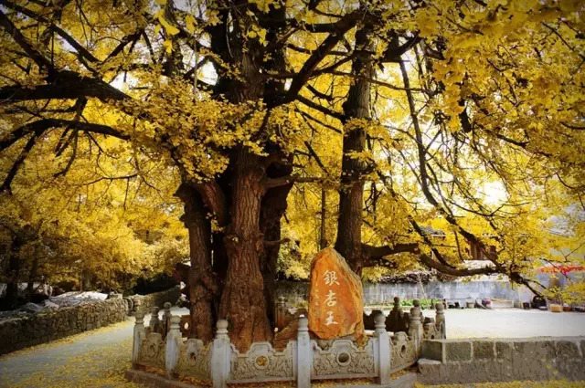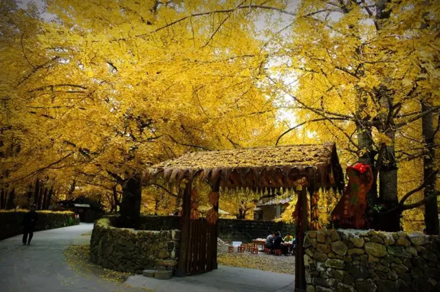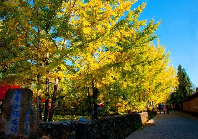 每年11月,银杏村房前屋后,小路上、石墙上、瓦房上、水沟中、菜地里……黄叶纷飞,一地金黄。游人身临其境,仿若走进金色的童话世界。清晨,阳光透过树叶缝隙投下美丽的斑驳光影,整个村庄都掩映在一片金黄中。