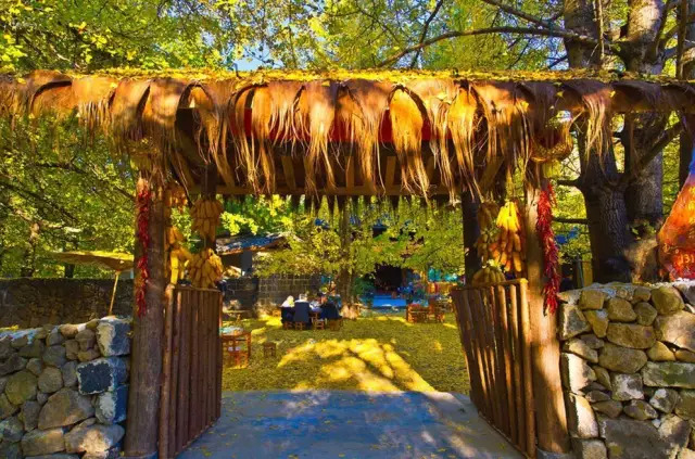 在怒江大峡谷,最出名的民俗,要算在春节期间举行的“澡塘会”。“澡塘会”是怒江地区的傈僳族一个独具民族特色的传统盛会。在每年的春节,过完大年初一,从大年初二到初七,住在高山峡谷的傈僳族人都要背着毯子、被子,带着米、肉、油、盐、菜和炊具,相约着来到怒江边有温泉的地方。他们在岩壁下、石洞里、石缝中铺上干草,摊开被子,这里就成了他们七天临时的“家”。他们在这里,欢快地举行露天宴会,进行荡秋千、“摆时”(赛歌)、上刀梯、下火海(踩炭火)、射弩等娱乐活动。江边的几个天然温泉池则是天天都去浸泡,据说能消除疾病,洗掉一年的过失和罪孽,以充沛的精力投入到新一年的劳作中。