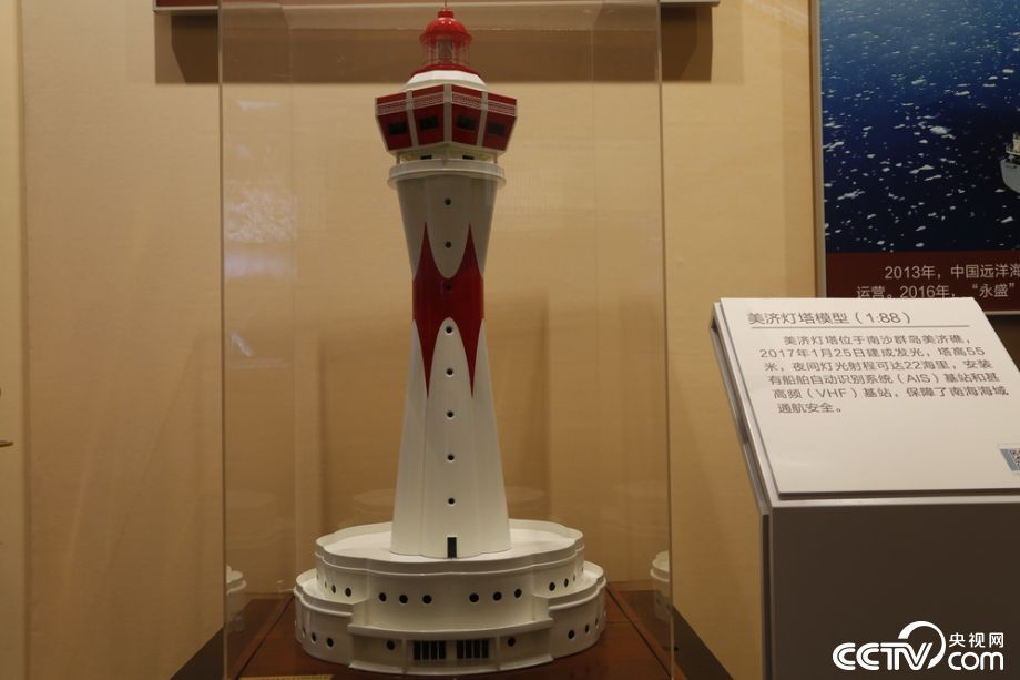 美济灯塔位于南沙群岛美济礁,2017年1月25日建成发光,塔高55米,夜间灯光射程可达22海里,安装有船舶自动识别系统(AIS)基站和甚高频(VHF)基站,保障了南海海域通航安全。
