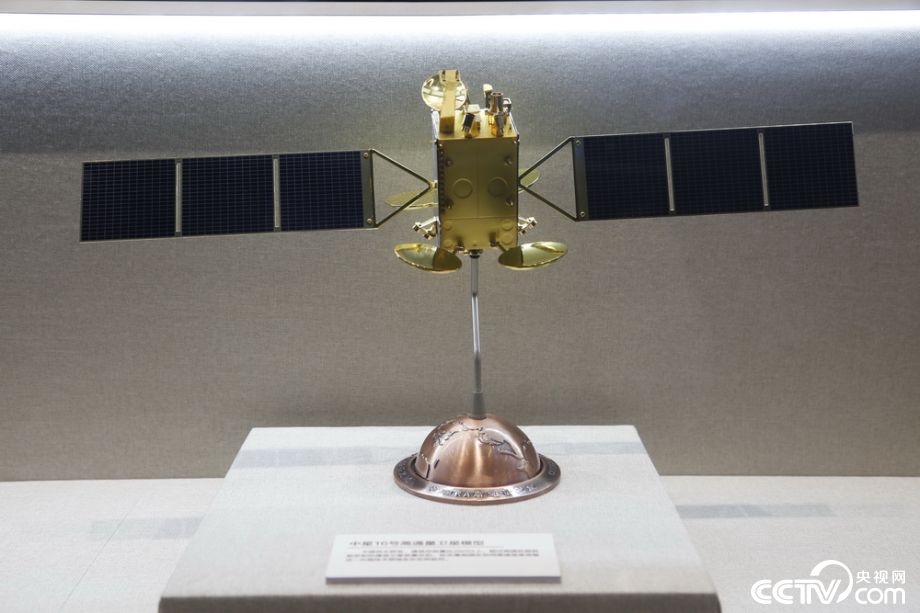 中星16号高通量卫星模型。中国自主研发,通信总容量达20G以上,超过我国此前研制发射的通信卫星容量总和,标志着我国在空间高速信息传输这一尖端技术领域走在世界前列。