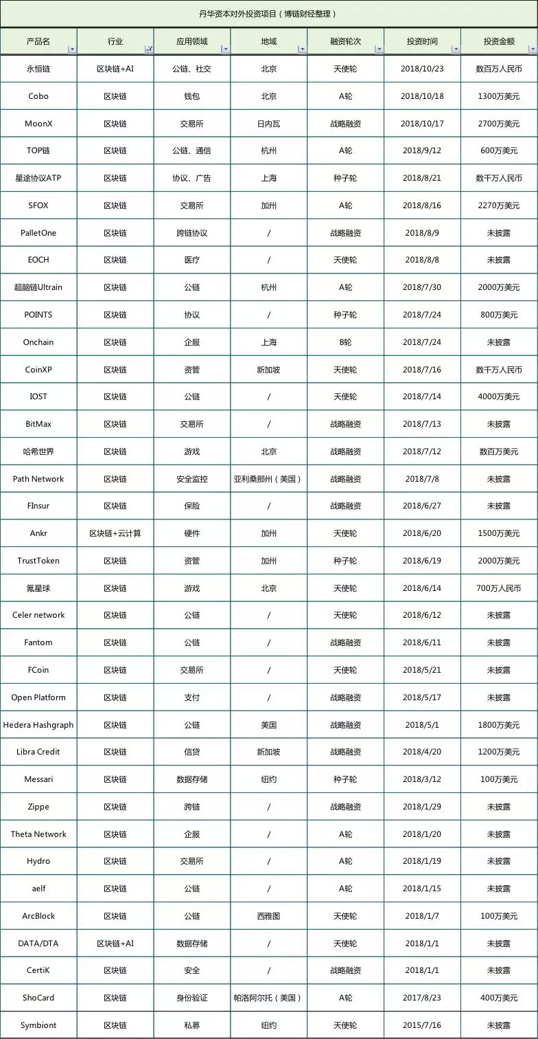 不可否认,尽管区块链项目占比存在争议,但这类项目的确是丹华资本的主要投资方向之一。