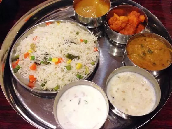 显然,这和他们的饮食结构有关。印度之行,中国人最担心或不满的也恰恰是饮食。他们的传统饮食中几乎没有“菜”这种东西。几天观察下来,普通印度人大多还保留着吃手抓饭的习惯,午餐基本是各种饼或米饭配着咖喱蘸着吃,丰富一点的就是“不同形状的”碳水化合物制品,比如春卷、土豆块、玉米饼,配着“色泽不同的”咖喱蘸着吃,再高档一些的餐馆就会提供咖喱鸡、咖喱虾等食物,因为信仰和宗教原因,没有牛肉和猪肉。