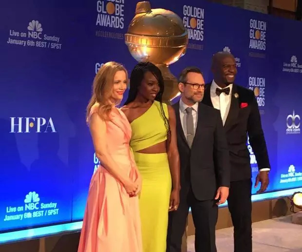 在希尔顿饭店里的大礼堂中,超过150位记者、焦急的影业公关、还有HFPA会员们齐聚一堂,在HFPA会长MeherTatna引介之后,克里斯汀·史莱特、达娜·古瑞拉、泰瑞·克鲁斯、莱斯利·曼恩等四位演员,轮流上台宣布得奖者名单。