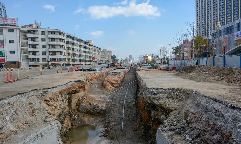 人民路西段,云南省昆明市东西向最长的主干道,地铁和道路修复工程已经延宕八年。2010年至今,全国主要城市处于地铁竞赛和城建风潮之中。昆明人民西路的地铁、路面工程却历经工期一拖再拖、交通严重拥堵,汇集昆明自2003年进入城市建设提速时代以来的诸多痛点。