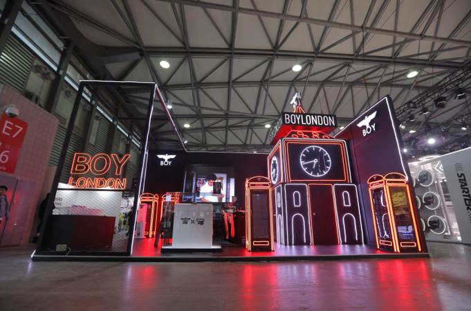BOY LONDON搭建了一个“伦敦大本钟”,里面设置了可以和现实互动的虚拟投影。还有四个伦敦街头常见的电话亭装置,用来展示变色鞋、售卖纹身贴,或是作为自拍区域。BOY LONDON还第一天玩起了现场拍卖,该品牌和日本银饰品牌STOP LIGHT的限量款吊坠拍出了18万的价格。