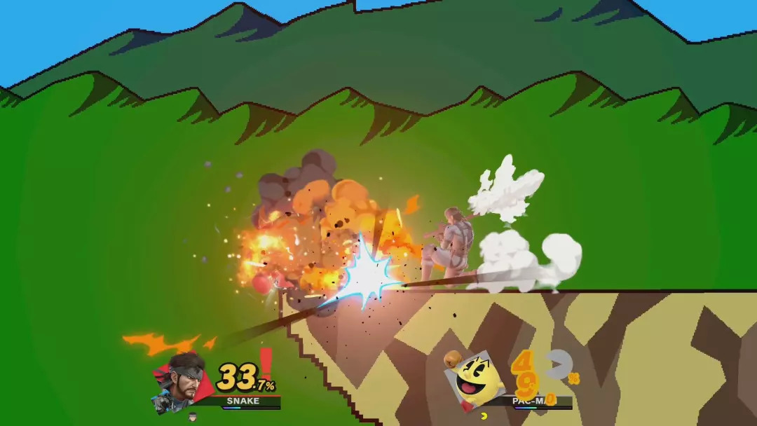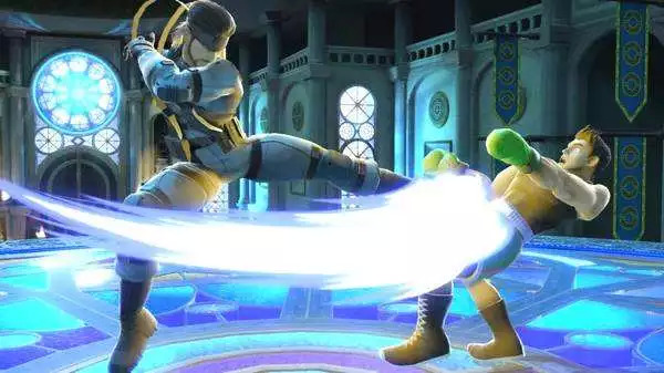除此之外,还有一个决定胜负的关键因素:空间。如果角色的站位不佳,比如站在最边缘,即使在低吹飞条的状态下也有可能被对面轻松打飞,而在封闭的室内环境中无论多强的smash,也无法将敌人向上吹飞。如果说传统格斗是在狭小空间的对抗,那大乱斗则是在巨大次元中的博弈,这对玩家的空间掌握以及站位有着不同传统的严苛要求。
