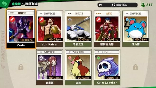 该作的初始角色池只有初代8元老,剩下的所有参战角色都需要完成对应的挑战才能解锁。当你完成任何一个单机模式后退出对战时,挑战就睡突然跳出,完成之后就可以解锁对应角色。但是每个挑战的出现间隔为10min,也就是说最快也得10min之后才能解锁下一个角色。诚然,10min对于大多数玩家来说并不算长,随便游玩一下其他模式就可以轻易度过。但是对于一些急于体验新角色的玩家(比如笔者)就可能觉得这种方式有点漫长。