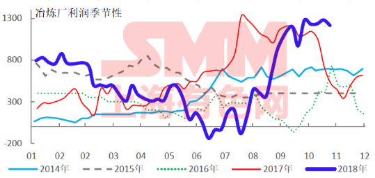 利润对冶炼厂的驱动是持续的,但从上图可以发现,炼厂利润并无明显的季节性规律,更多归因于当期的矿供需关系。