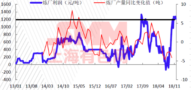 但目前面临的问题是冶炼的产能瓶颈问题,因为今年环保的存在,还未有冶炼产能利用率的大幅提高;但只要利润还在那么炼厂的行为就会有驱动,只是未来时间点的问题。